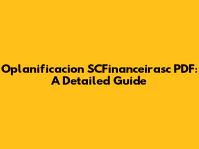 Oplanificacion SCFinanceirasc PDF: A Detailed Guide