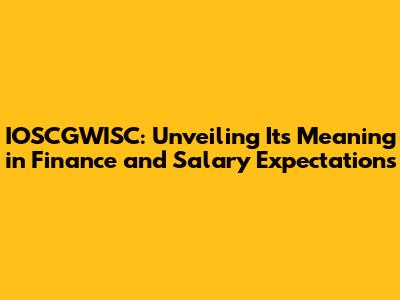 Hey guys! Let's dive into the fascinating world of finance and explore a term that might be new to you: IOSCGWISC. We'll break down what it means, its relevance in the financial sector, and, of course, what kind of salary you can expect if you're involved. Ready to unravel the mystery? Let's get started!