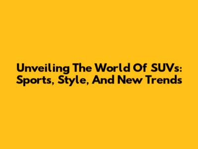 Unveiling The World Of SUVs: Sports, Style, And New Trends