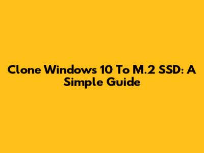 Clone Windows 10 To M.2 SSD: A Simple Guide