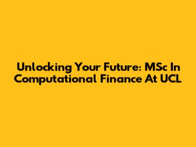 Unlocking Your Future: MSc In Computational Finance At UCL