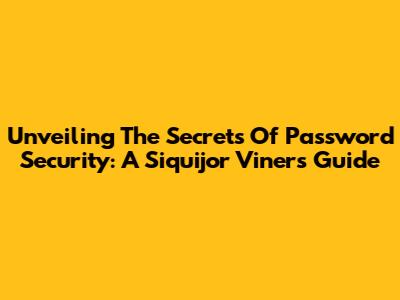 Unveiling The Secrets Of Password Security: A Siquijor Viners Guide