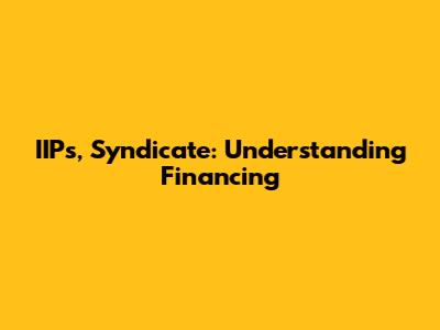 IIPs, Syndicate: Understanding Financing