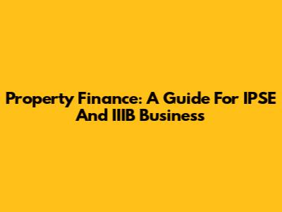 Property Finance: A Guide For IPSE And IIIB Business