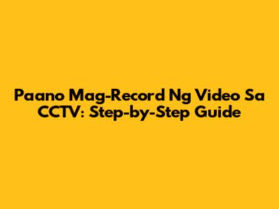 Paano Mag-Record Ng Video Sa CCTV: Step-by-Step Guide