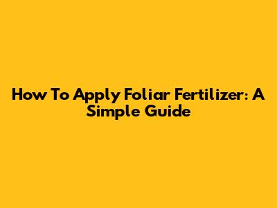 How To Apply Foliar Fertilizer: A Simple Guide