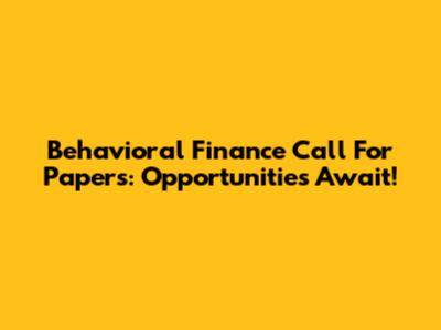 Behavioral Finance Call For Papers: Opportunities Await!