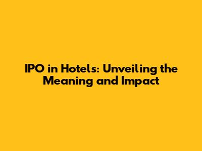 Hey guys! Ever heard the term "IPO" thrown around in the hotel industry and wondered what in the world it means? Well, you're in the right place! We're going to dive deep into what IPO stands for in the context of hotels, why it matters, and what kind of impact it can have. Get ready to have your questions answered, and maybe even learn a thing or two that'll impress your friends! Seriously, understanding IPOs is like having a secret weapon in the hospitality world, so let's get started, shall we?
