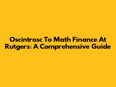 Oscintrosc To Math Finance At Rutgers: A Comprehensive Guide