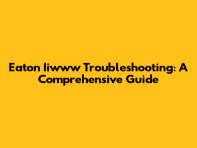 Eaton Iiwww Troubleshooting: A Comprehensive Guide
