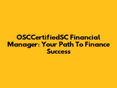 OSCCertifiedSC Financial Manager: Your Path To Finance Success