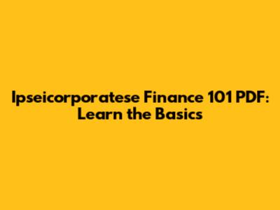 Why You Need a Finance 101 PDF for Ipseicorporatese
