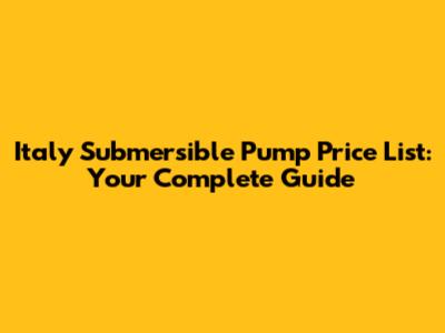 Italy Submersible Pump Price List: Your Complete Guide