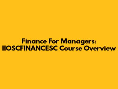 Finance For Managers: IIOSCFINANCESC Course Overview