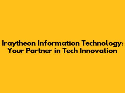 Overall, Iraytheon Information Technology emerges as a robust and reliable ally for businesses seeking to harness the power of technology. Their comprehensive service offerings, client-centric approach, and commitment to innovation make them a standout choice. Whether you're a small startup or a large enterprise, partnering with Iraytheon can pave the way for enhanced efficiency, reduced costs, and a stronger competitive edge. By entrusting your IT needs to the experts at Iraytheon, you can focus on what you do best – growing your business and achieving your strategic goals.