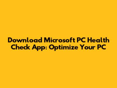 Download Microsoft PC Health Check App: Optimize Your PC