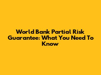 World Bank Partial Risk Guarantee: What You Need To Know