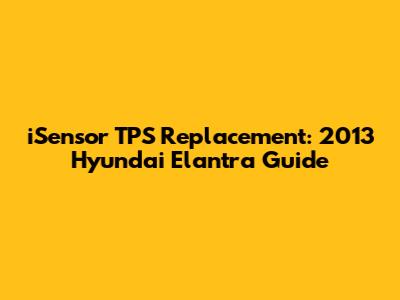 Hey guys! If you're having trouble with your iSensor TPS (Throttle Position Sensor) on your 2013 Hyundai Elantra, you've come to the right place. This guide will walk you through everything you need to know about the iSensor TPS, from what it is and what it does, to troubleshooting issues and even replacing it yourself. We'll keep it casual and easy to understand, so even if you're not a car whiz, you'll be able to follow along. The Throttle Position Sensor (TPS) is a crucial component in your car's engine management system. Its main job is to monitor the position of the throttle plate, which in turn tells the engine control unit (ECU) how much power you're asking for when you press the accelerator pedal. The ECU uses this information to adjust the fuel injection and ignition timing, ensuring your engine runs smoothly and efficiently. A faulty TPS can lead to a variety of problems, including poor acceleration, rough idling, stalling, and even decreased fuel economy. Therefore, understanding its function and knowing how to address potential issues is essential for maintaining your vehicle's performance. If your 2013 Hyundai Elantra is exhibiting any of these symptoms, it's a good idea to check the TPS. We're going to dive into the specifics of the iSensor TPS used in your car, how to diagnose problems, and whether a replacement is the right move. So, let's get started and get your Elantra running like a champ again!