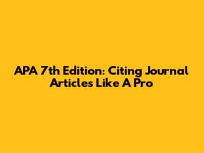 APA 7th Edition: Citing Journal Articles Like A Pro