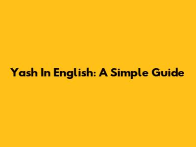 Yash In English: A Simple Guide