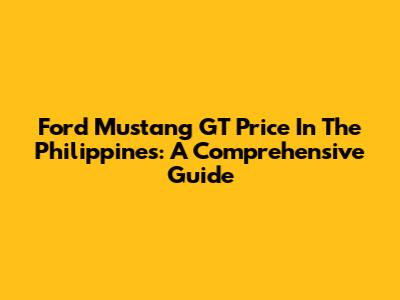 Ford Mustang GT Price In The Philippines: A Comprehensive Guide