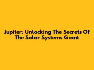 Jupiter: Unlocking The Secrets Of The Solar System's Giant