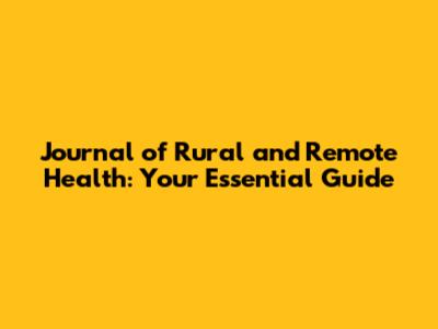 Hey guys! Ever wondered about the challenges and triumphs of healthcare in the sticks? Well, buckle up, because we're diving deep into the world of the Journal of Rural and Remote Health (JRRH). This journal isn't just some dusty old publication; it's a vital resource for anyone and everyone interested in improving health outcomes for folks living far from the city lights. This article will be your go-to guide, breaking down everything you need to know, from its mission and scope to its impact and how you can get involved. We'll be chatting about the major issues and the cutting-edge research happening right now. Let's get started!