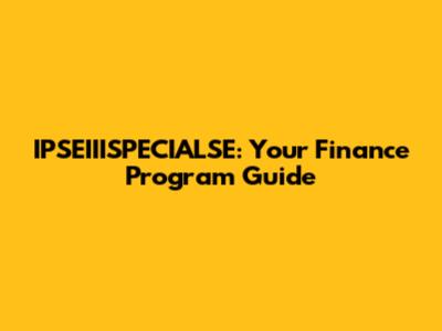 IPSEIIISPECIALSE: Your Finance Program Guide