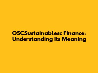 OSCSustainablesc Finance: Understanding Its Meaning