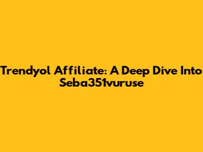 Trendyol Affiliate: A Deep Dive Into Seba351vuruse