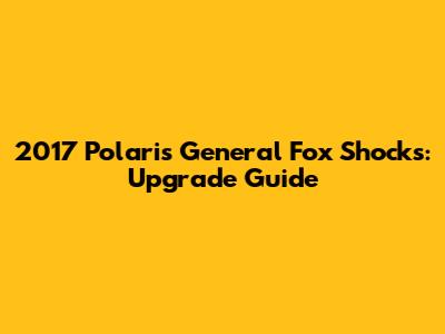 2017 Polaris General Fox Shocks: Upgrade Guide