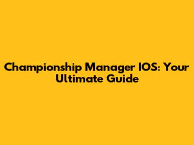 Championship Manager IOS: Your Ultimate Guide