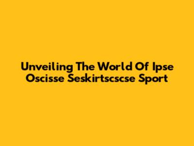 Unveiling The World Of Ipse Oscisse Seskirtscscse Sport