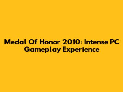 Medal Of Honor 2010: Intense PC Gameplay Experience