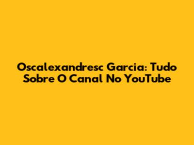 Oscalexandresc Garcia: Tudo Sobre O Canal No YouTube