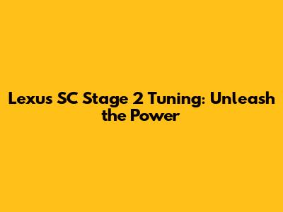 Hey guys! Are you ready to dive into the exciting world of Lexus SC Stage 2 tuning? If you're a car enthusiast looking to boost your ride's performance, you've come to the right place. In this comprehensive guide, we'll break down everything you need to know about Stage 2 tuning for your Lexus SC, from what it entails to the awesome benefits you can expect. So, buckle up and let's get started!