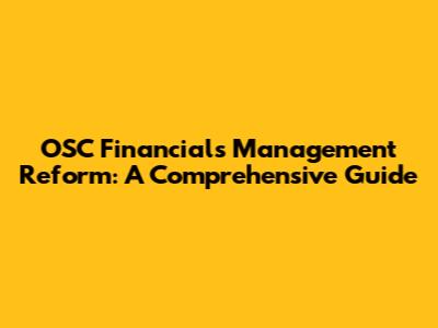 OSC Financials Management Reform: A Comprehensive Guide