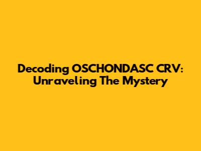 Decoding OSCHONDASC CRV: Unraveling The Mystery