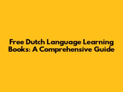 Free Dutch Language Learning Books: A Comprehensive Guide