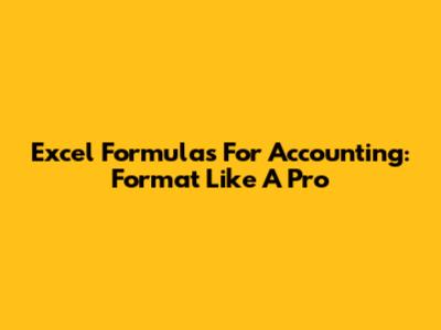 Excel Formulas For Accounting: Format Like A Pro
