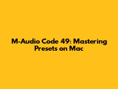 Hey music producers and keyboard enthusiasts! Are you guys rocking the M-Audio Code 49 MIDI controller on your Mac? If so, you're probably already aware of its awesome features and the creative freedom it offers. But, are you truly maximizing its potential, especially when it comes to preset management? Let's dive deep into the world of the M-Audio Code 49 preset editor on Mac, covering everything from initial setup to advanced customization techniques. We'll explore how to navigate the software, create, save, load, and tweak presets for various virtual instruments and DAWs, ensuring your workflow is smoother and your sound is more unique. Buckle up, because by the end of this article, you'll be a preset-editing ninja, ready to unlock the full power of your Code 49!