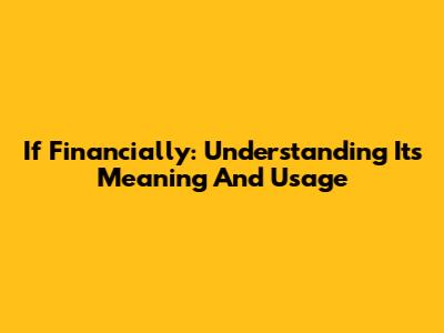 If Financially: Understanding Its Meaning And Usage