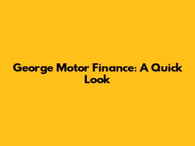George Motor Finance: A Quick Look