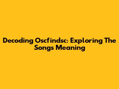 Decoding Oscfindsc: Exploring The Song's Meaning