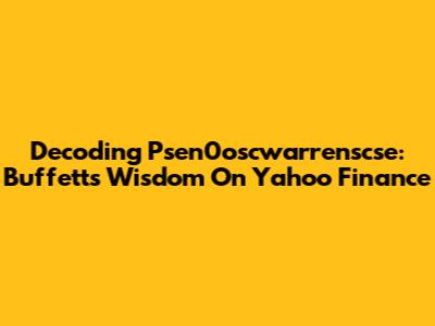 Decoding Psen0oscwarrenscse: Buffett's Wisdom On Yahoo Finance