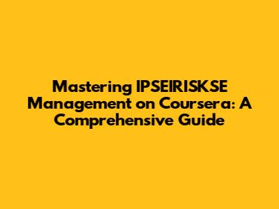 Why Coursera is Your Go-To for IPSEIRISKSE Management Courses
