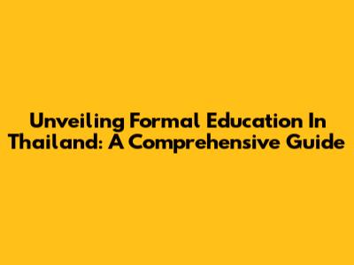 Unveiling Formal Education In Thailand: A Comprehensive Guide