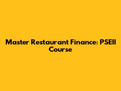 Master Restaurant Finance: PSEII Course