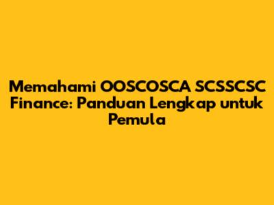Mengapa Memahami OOSCOSCA SCSSCSC Finance Itu Penting?