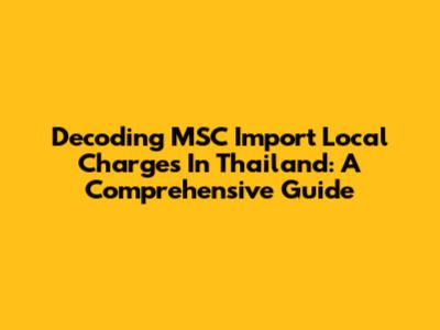 Decoding MSC Import Local Charges In Thailand: A Comprehensive Guide